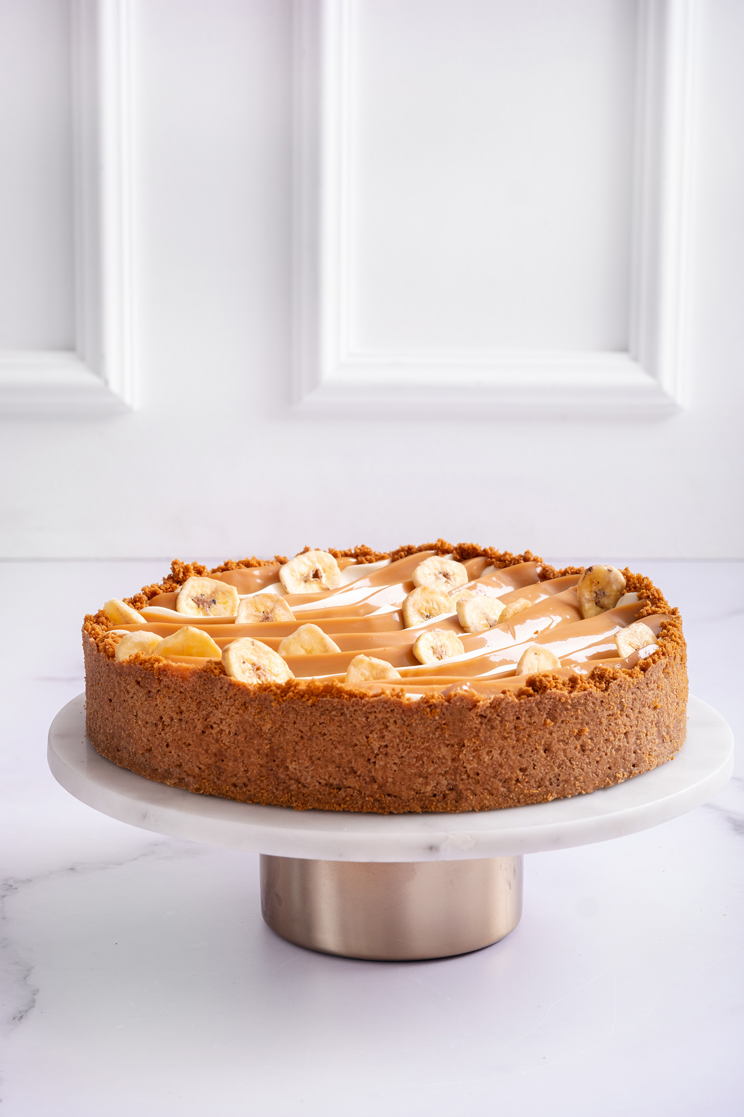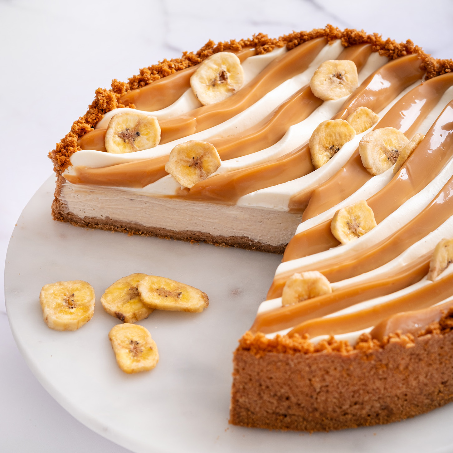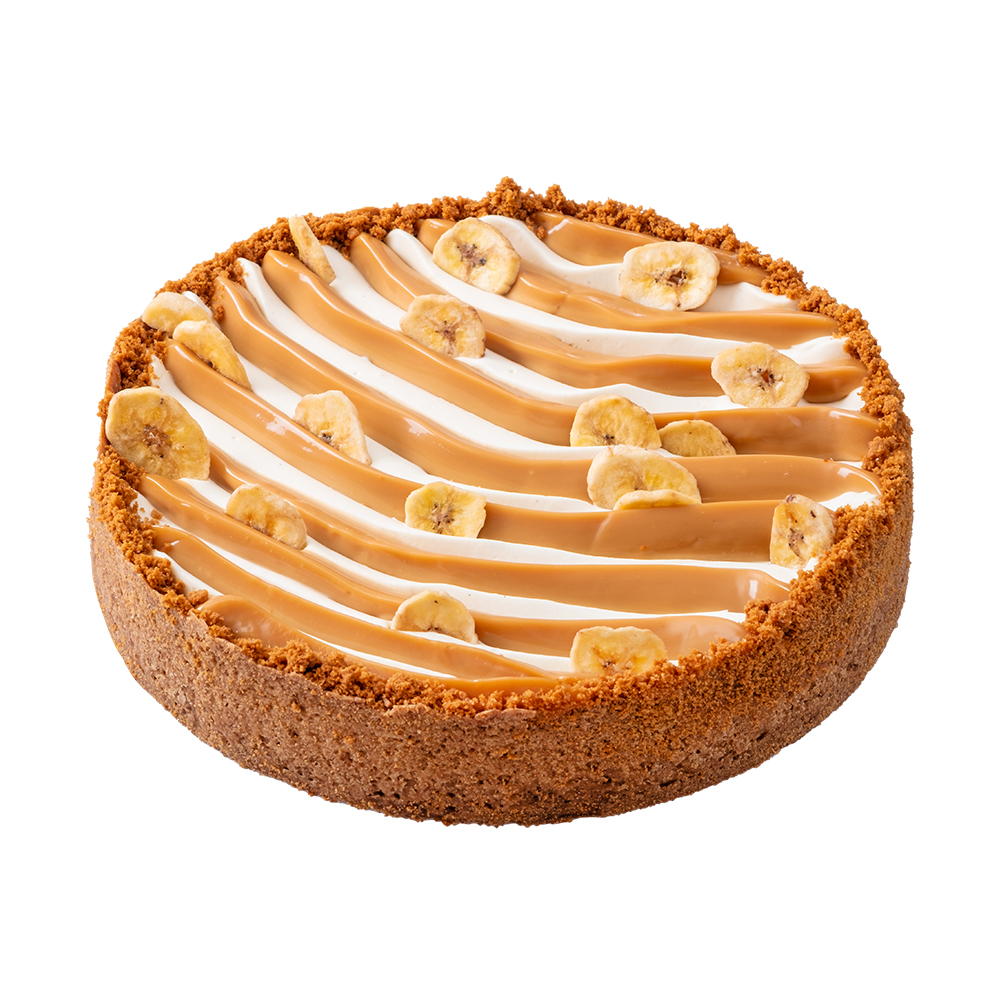 Až to ochutnáte, budete nečekaně překvapeni – jemná banánová chuť v pečeném cheesecakovém krému v kombinaci s karamelovou ganáží, která má lesklou a hladkou texturu. Pro zjemnění ji doplňuje vanilková ganáž. Cheesecake inspirovaný legendární kombinací banán + karamel + šlehačka, která se jmenuje Banoffee.