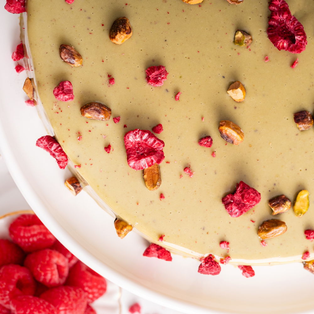 Pistáciový dort zalitý chuťově dokonalou pistáciovou ganáží. Potřebujete vůbec vědět víc, abyste se do něj pustili? Pistáciový korpus, jemný pistáciový krém, výrazná pistáciová ganáž, lyofilizované maliny a křupavé kousky pistácií tvoří nepřekonatelnou verzi oblíbeného Siciliano dortu, kterému jsme dali novou podobu a ještě intenzivnější pistáciovou chuť.